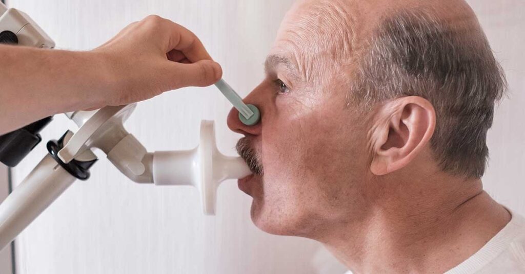 Exame que mede fluxos e volumes pulmonares. É um dos principais exames solicitados para avaliar queixa de dispnéia (falta de ar)